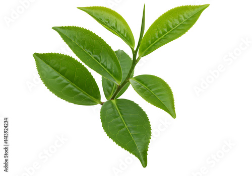 © dipu, Obraz premium Green Tea Leaf Isolated on Transparent Background