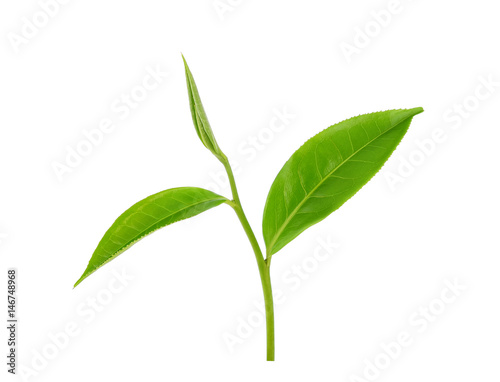 © akepong srichaichana, Fototapeta premium green tea leaf isolated on white