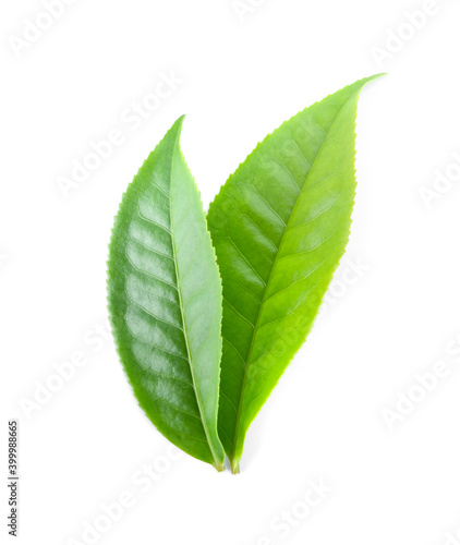 © sangsiripech, Obraz premium Green tea leaf isolated on white