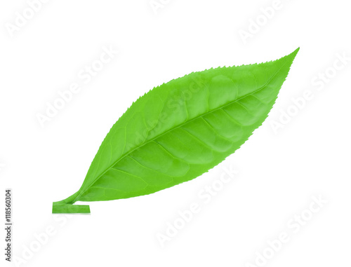 Obraz premium Green tea leaf isolated on white background