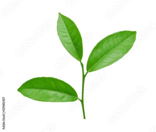 © akepong srichaichana, Naklejka premium Green tea leaf isolated on white background