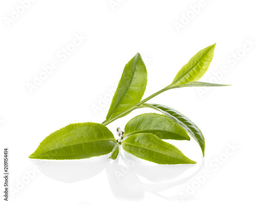 Obraz premium Green tea leaf isolated on white background