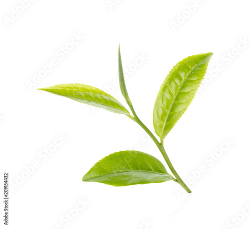 © anusak, Obraz premium Green tea leaf isolated on white background