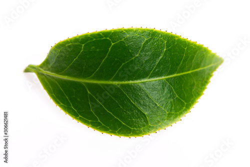 © joanna wnuk, Obraz premium Green tea leaf isolated on white background