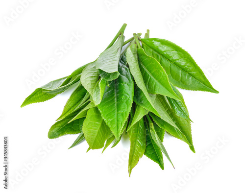 Obraz premium Green tea leaf isolated on white background