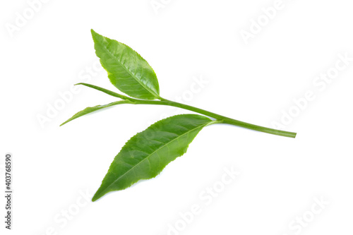 Obraz premium Green tea leaf isolated on white background