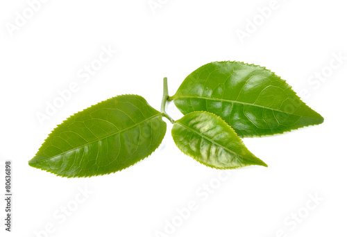 Obraz premium Green tea leaf isolated on white background