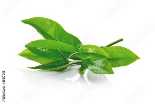 © siwaporn999, Obraz premium green tea leaf isolated on white background