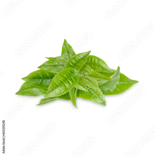 © sathit, Obraz premium Green tea leaves isolated on transparent background (.PNG)