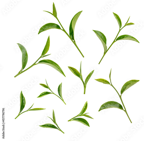 © sathit, Fototapeta premium Green tea leaves isolated on white background