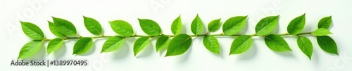 © Sutasinee, Fototapeta premium Green tea leaves on white surface with shadows, shadow, isolated