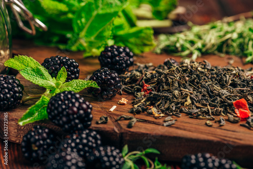 Fototapeta premium Green Tea with Blackberry, Mint and Thyme.