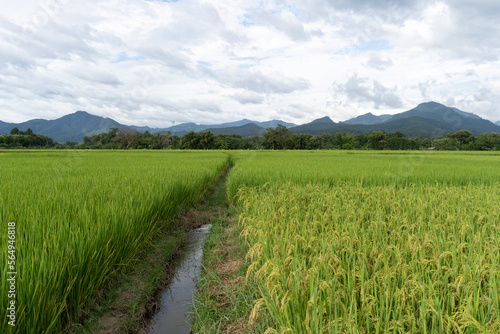 © Charlie's, Fototapeta premium Green Terraced Rice Field. rice is growing in the field background