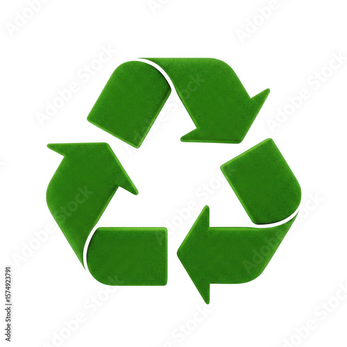 Obraz premium Green textured recycling symbol with three chasing arrows isolated on...