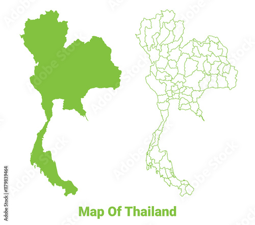 © Jayartiez, Fototapeta premium Green Thailand map outline and flat vector illustration
