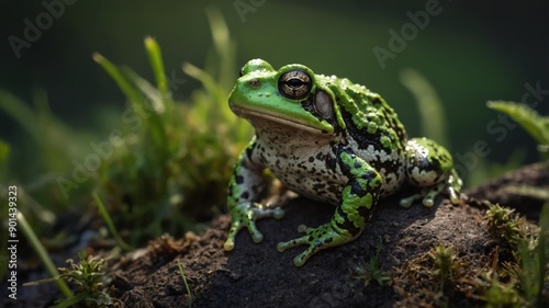 © Den Boro Day, Fototapeta premium Green toad Bufotes viridis, also Pseudepidalea or Bufo in Czech Republic.