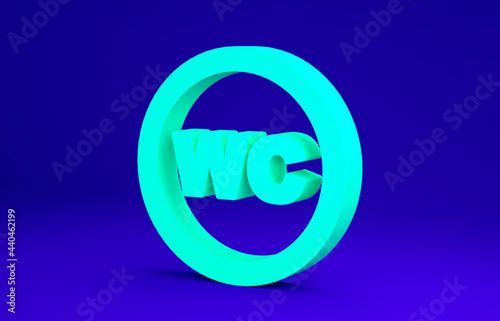 Obraz premium Green Toilet icon isolated on blue background. WC sign. Washroom. Minimalism concept. 3d illustration 3D render