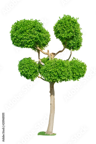 © Kuzmick, Obraz premium Green topiary tree for garden isolated