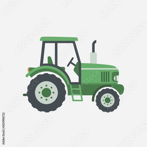 © Ali, Obraz premium Green tractor with black tires isolated on a white background illustration.