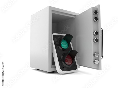 Obraz premium Green traffic light inside safe