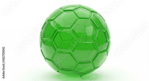 © KHOIRUR, Fototapeta premium Green transparent sphere with hexagonal pattern isolated on a white background