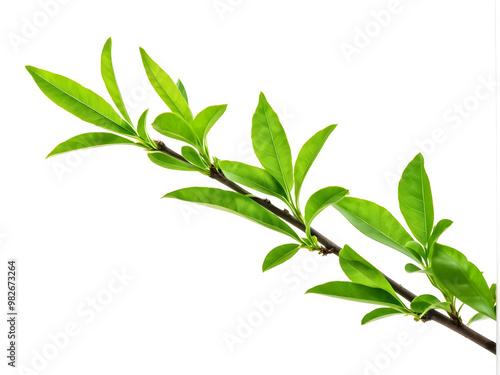 Fototapeta premium Green tree branch isolated white background with clipping path, full hd