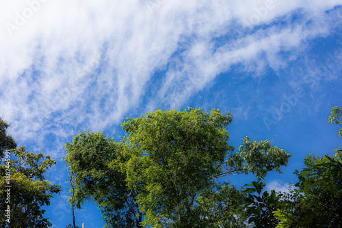 Obraz premium Green Tree Canopy Blue Sky And Wispy Clouds