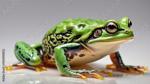 © Islam, Obraz premium Green Tree Frog Close-Up – Colorful Amphibian on White Background
