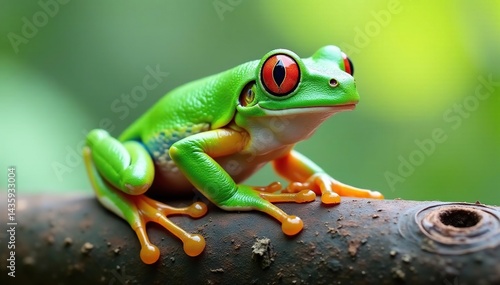 © Nimman, Obraz premium Green tree frog perched on white, vibrant color , isolated, white background, fauna