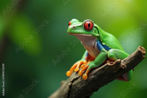 © box, Naklejka premium Green tree frog perched on white, vibrant colors , isolated, macro