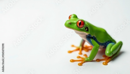 © anulak, Obraz premium Green tree frog perched on white, vibrant skin, amphibian, zoology, studio