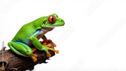 © phetking, Obraz premium Green tree frog perched on white, vibrant skin, detail, glossy