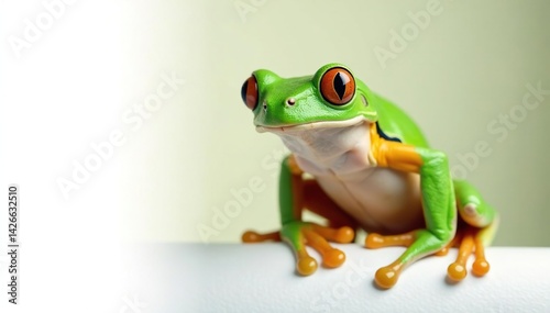 © Chaya, Obraz premium Green tree frog perched on white, vibrant skin, fauna, isolated, white background