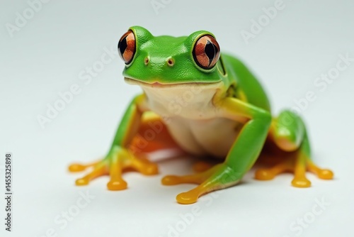 © Pawat, Obraz premium Green tree frog perched on white, vibrant skin, isolated, reptile, animal