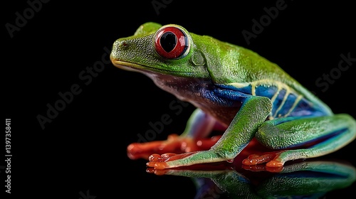 © abangaboy, Naklejka premium Green Tree Frog Posing Against Black Background
