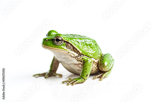 © Rysak, Obraz premium Green Tree Frog Sitting on White Background