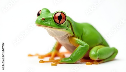 © Wachiraporn, Obraz premium Green tree frog, vibrant skin, white background, toes, ecology
