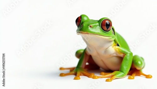 © Wimonrat, Obraz premium Green tree frog, vibrant skin, white background, wildlife, closeup