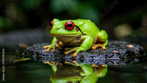 © vvicca, Naklejka premium Green Tree Frog with Red Eyes