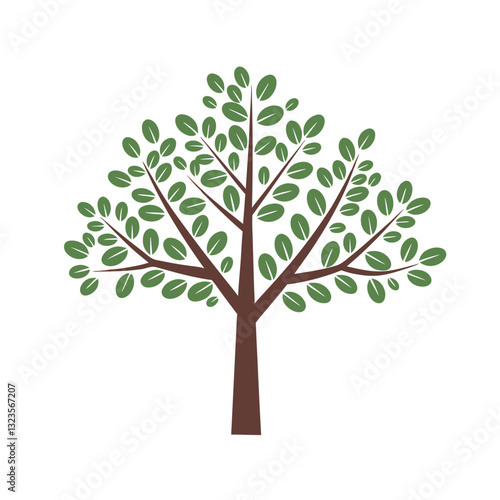 Fototapeta premium Green Tree Illustration with Brown Trunk and Leaves for Eco Design and Nature Themes