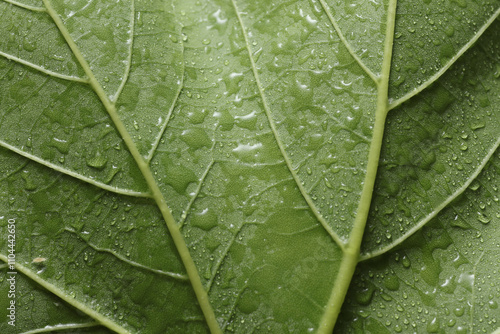© splitov27, Fototapeta premium Green tree leaf in drops of water or rain