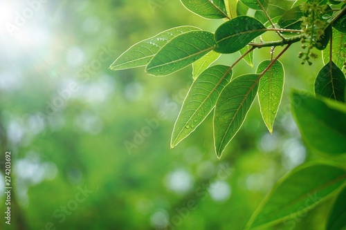 © Ismael, Obraz premium green tree leaves and branches in the natrue, green background