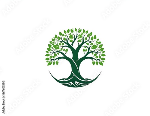 © Asar, Obraz premium Green Tree Logo Design, Circular Background