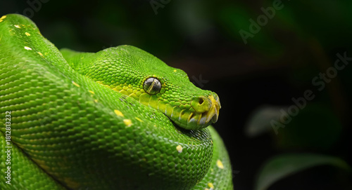 © breakingthewalls, Fototapeta premium Green tree python profile portrait close up
