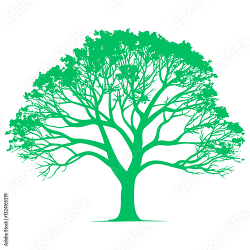 © saint, Obraz premium Green tree silhouette vector illustration.