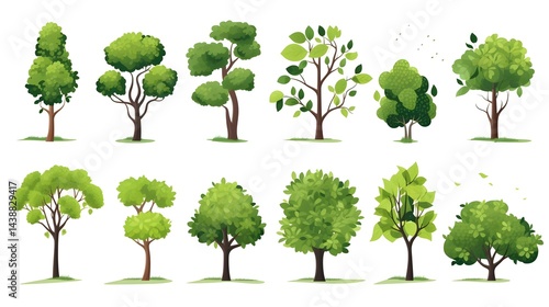 Fototapeta premium Green Tree with Fertile Variety of Forms on White Background