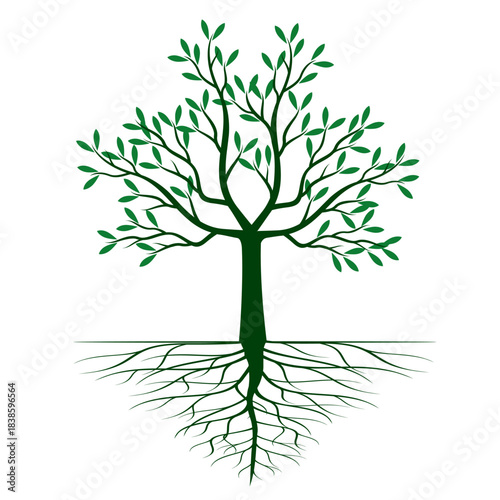 © topor, Fototapeta premium Green Tree with Leaves and Roots. Vector outline Illustration. Plant in Garden.