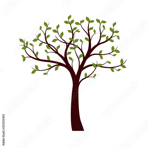 Obraz premium Green Tree with leaves on white background. Vector Illustration.