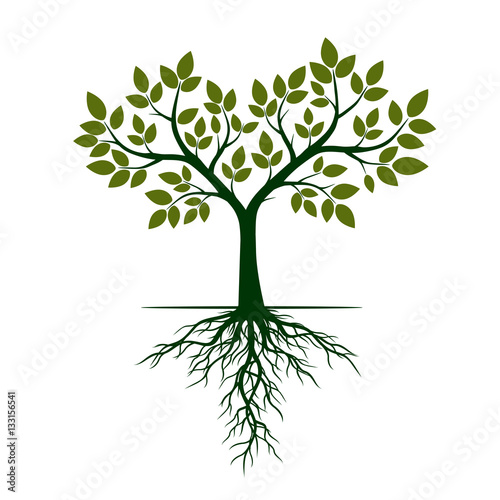 © topor, Obraz premium Green Tree with Roots. Vector Illustration.
