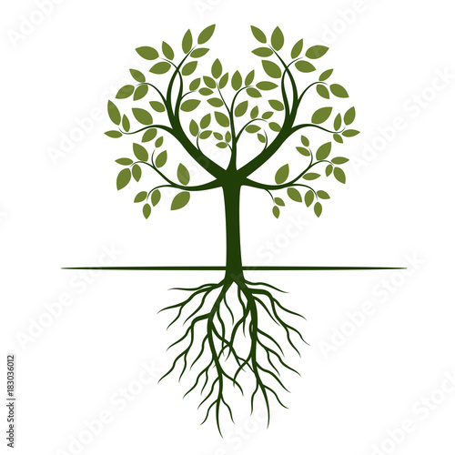 © topor, Obraz premium Green Tree with Roots. Vector Illustration.